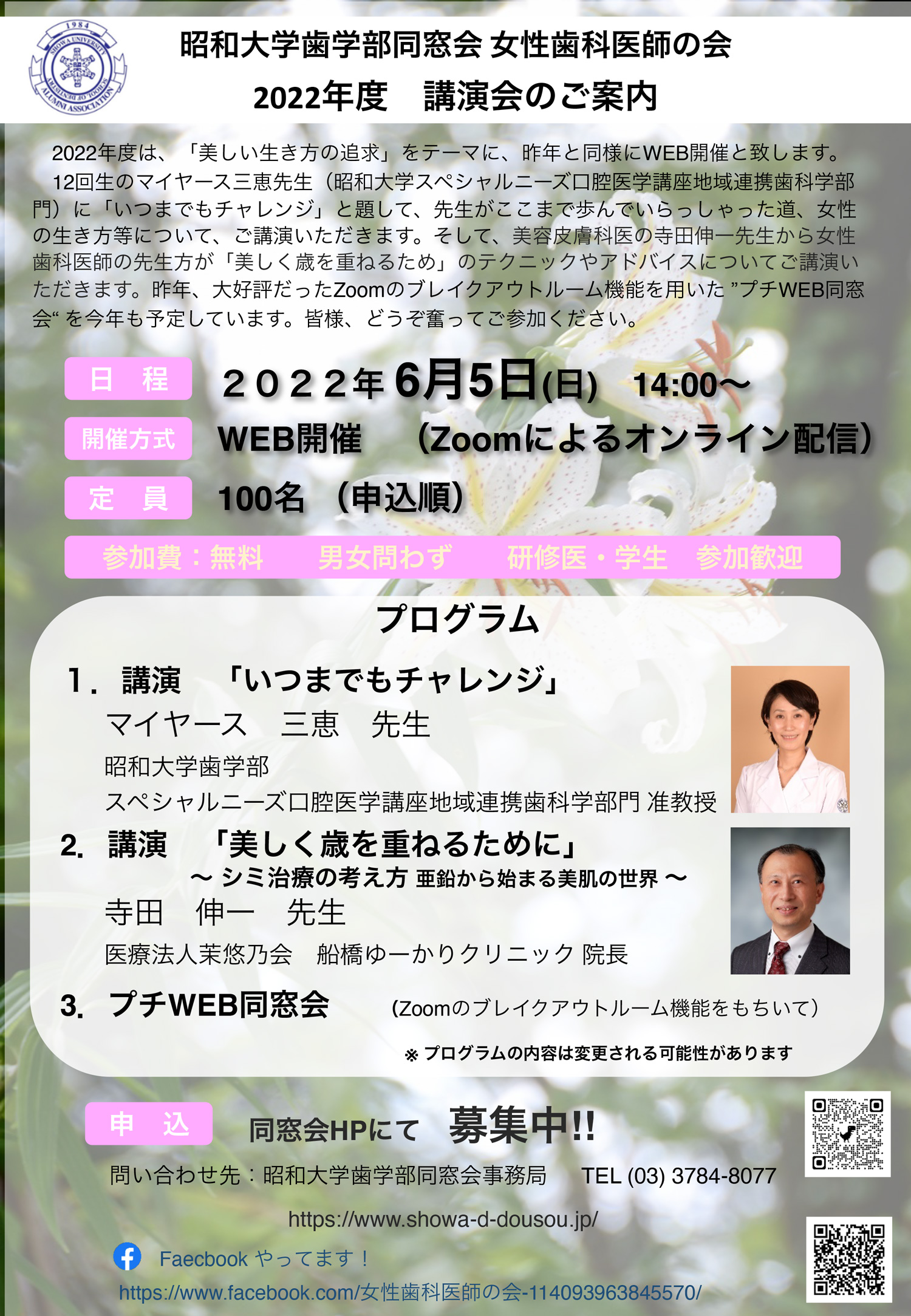2022年6月5日(日) 女性歯科医師の会 講演会のお知らせ