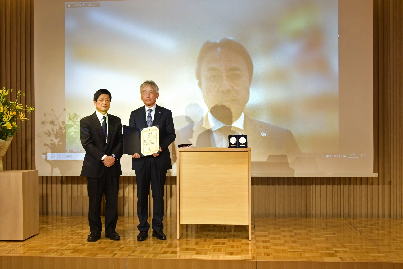 受賞者:川村 益彦 氏(中央)と山元 理事長(左)