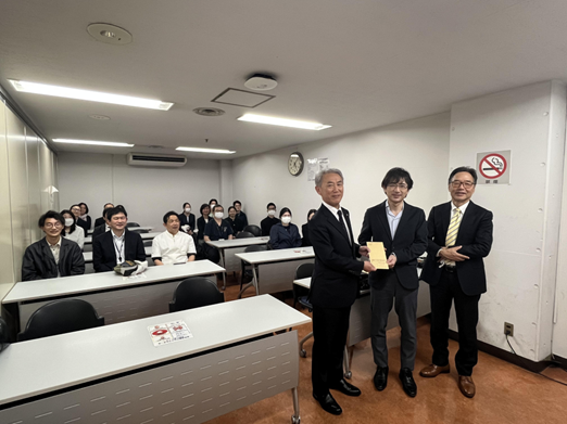 第117回歯科医師国家試験が無事に終了し、昭和大学歯学部の国家試験合格率は高く、29大学中2位という好成績でした。この結果は、同窓会としましては、大変嬉しくまた誇りです。教員の皆様が一丸となって国家試験対策に力を注がれ、日々指導された賜物と思っております。今回は、国家試験受験前に成績が振るわない学生さんには、修学支援として教員(D6チューター)28名と特別奨学生の大学院生協力者6名、総勢34名の先生方が国家試験直前まで学生さんの指導に当たったそうです。そこで4月11日(木)、ご尽力された先生方に歯科病院にお集まりいただき、馬場歯学部長同席のもと、同窓会より国家試験対策援助金の贈呈式を行いました。
